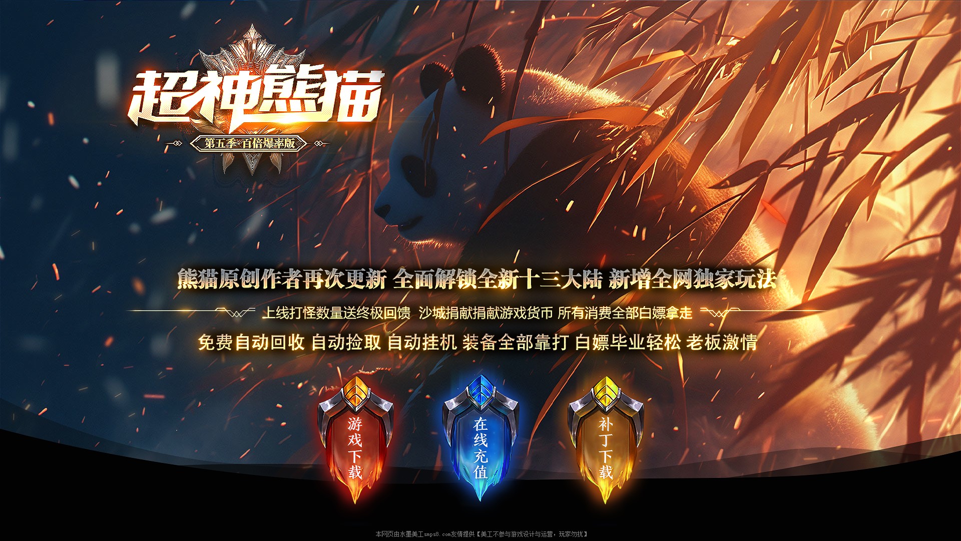 • ★游戏介绍★:全新超神熊猫,无充值地图,无充值独享属性,白嫖毕业简单,土豪激情无限,每日攻城奖励大量红苞